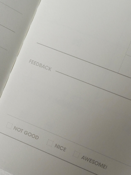 같은 페이지 오른쪽 아래에는 간략한 피드백 란이 마련되어 있었습니다. 기록하는 것만으로도 충분하지만, 거기에 피드백까지 더한다면 더 좋겠지요.