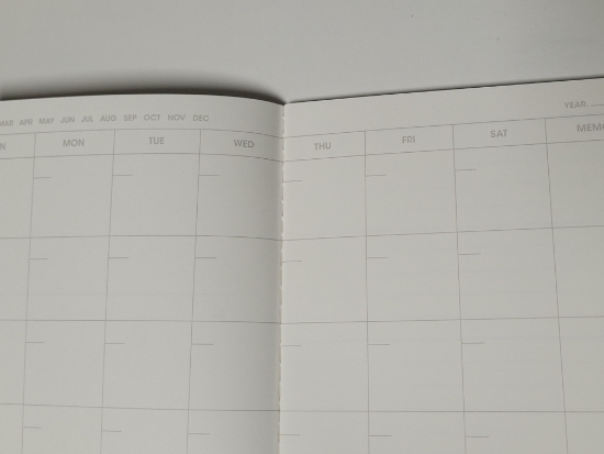 한 달 분량의 먼슬리 페이지는 만년형으로 직접 날짜를 적어넣으면 완성! 아무래도 1개월 분량의 플래너는 언제 사용하게 될지 모르니 만년형이 편리하지요.